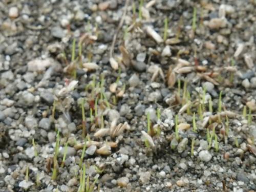 雑草抜いた穴に種を一つまみ入れて、土をかぶせて、として部分と、20cm四方程度の土を剥いで、蒔いて、被せてってな事をした部分とありますが、8月3日付近から追い蒔き、8月9日には発芽を確認しています。